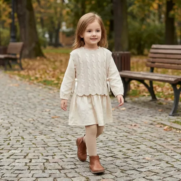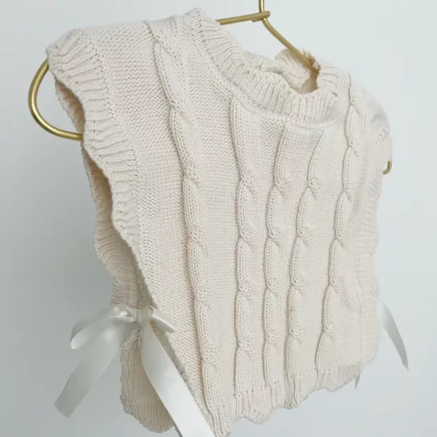 Min niece plejer ikke at ville have mere tøj uden på, men den her strik tog hun på uden brok. Den er blød og uden ærmer, så hun kan stadig lege frit, og den holder sig pæn, selv efter en aktiv dag.