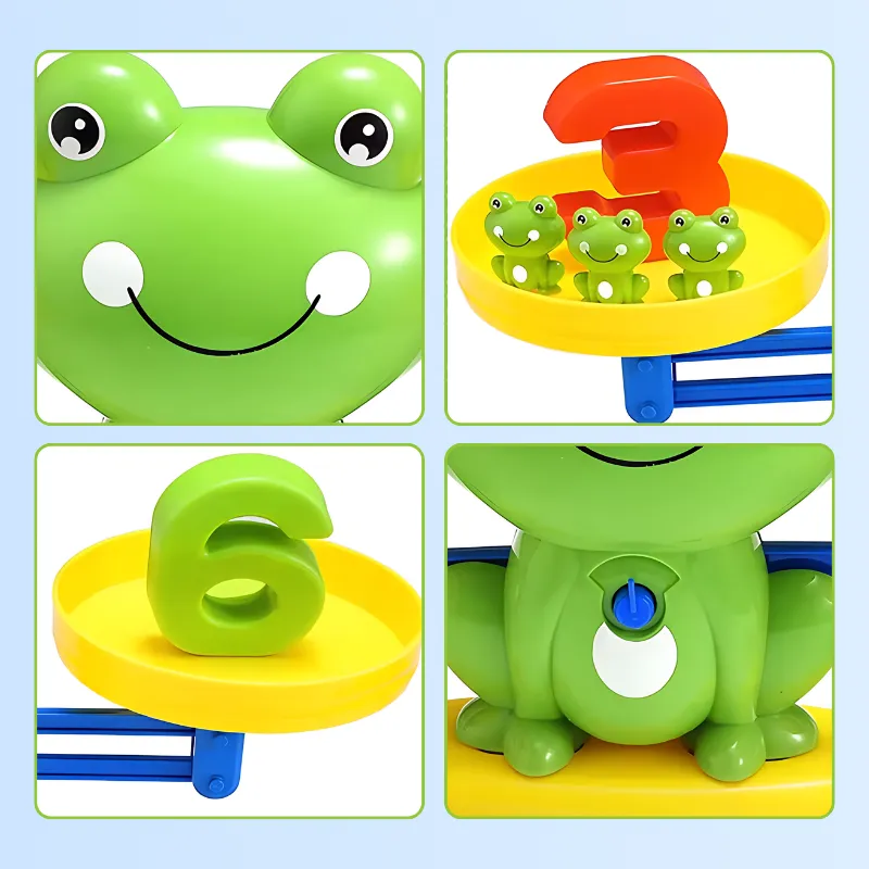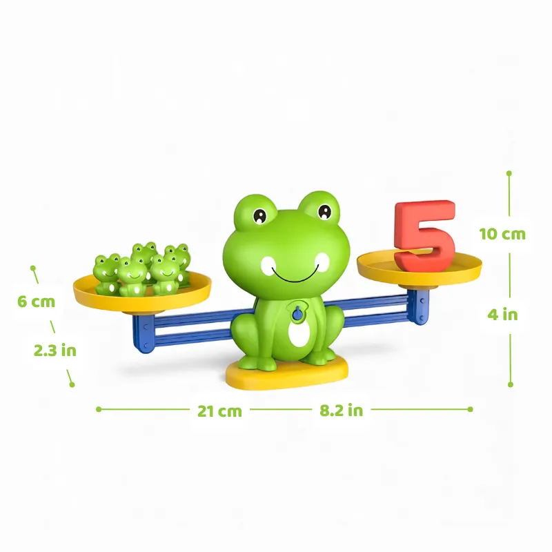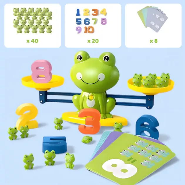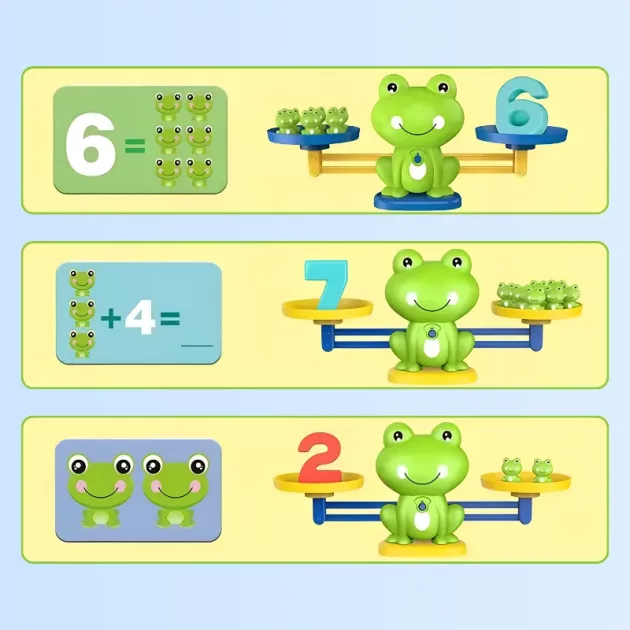 Mit barn spørger efter frøbalance hver eftermiddag, og jeg er så glad for at se hende begejstret for matematik. De lyse frøer fanger virkelig hendes opmærksomhed.