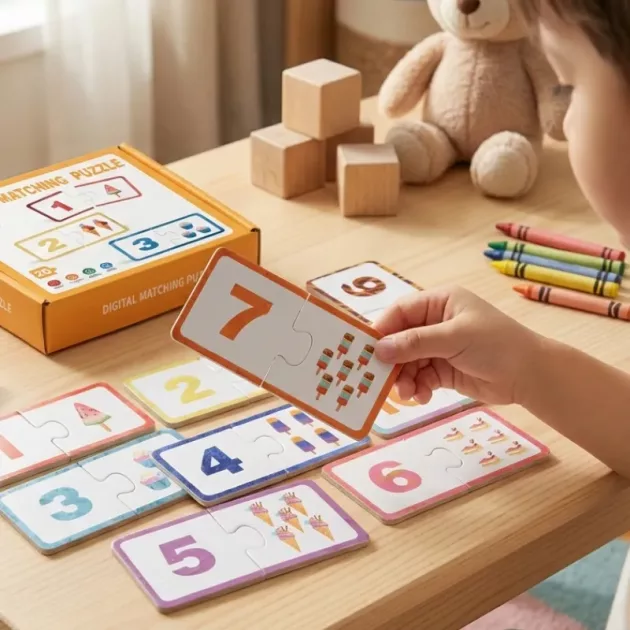 Kognitiv udvikling - Hvert puslespilskort styrker problemløsning ved at invitere til logisk tænkning. At matche tal styrker hukommelsen og opmuntrer til selvstændig udforskning.