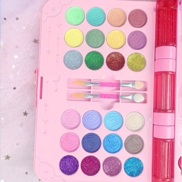 Makeupsættet er så farverigt! Jeg elsker, at det alt kan vaskes af med lidt vand, og min bedste ven og jeg kan dele det uden bekymring.