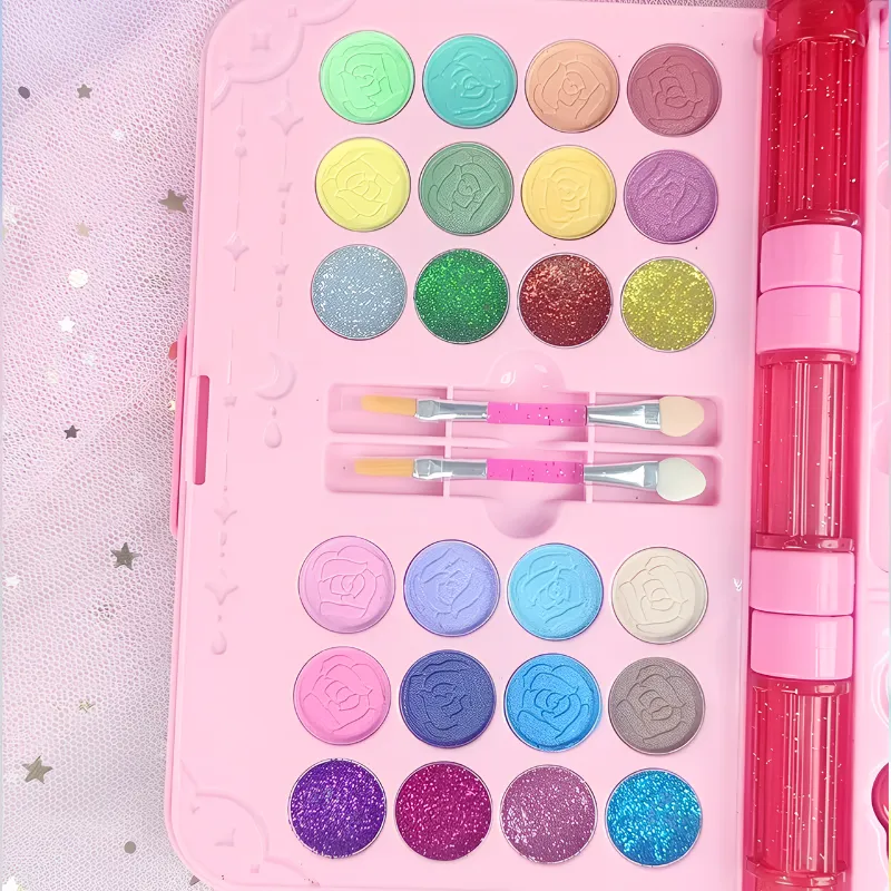 Makeupsættet er så farverigt! Jeg elsker, at det alt kan vaskes af med lidt vand, og min bedste ven og jeg kan dele det uden bekymring.