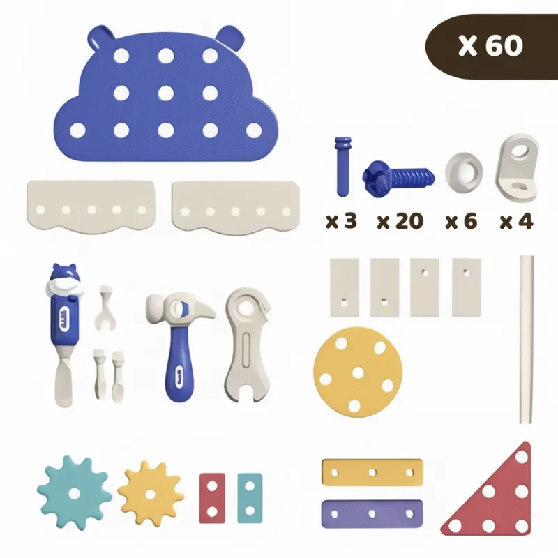 Se fantasien flyve, når unge byggere udforsker uendelige muligheder. Hvert værktøj opmuntrer nysgerrighed, koordination og glædelige læringsoplevelser. Oprydning bliver let med en smart boks, der holder det hele organiseret. Giv dit barn en sjov måde at øve problemløsning fra virkeligheden hver dag.