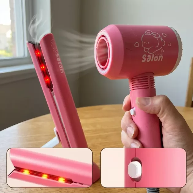 Min lillesøster kunne ikke stoppe med at lege med sit nye makeupsæt. Hun grinede hver gang den falske hårtørrer lavede lyde, og hun følte sig som en rigtig stylist.