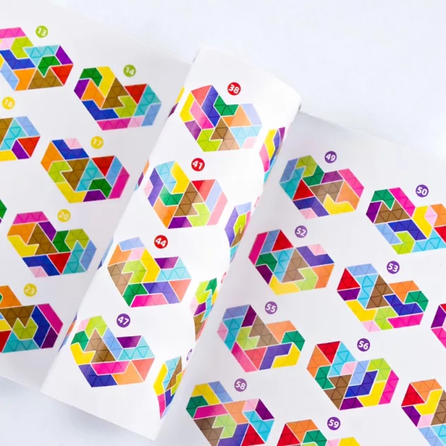 Super flotte farver og interessante former holder min datter interesseret hver gang. Hun er blevet rigtig god til at prøve nye mønstre uden hjælp.