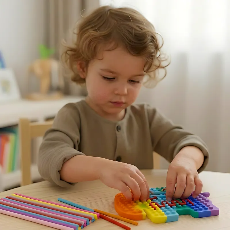 Børn nyder timevis af sjov, mens de udvikler vigtige færdigheder. Dette farverige silikone sansebræt opmuntrer aktive sind og rolige hænder. De spændende mønstre styrker fantasien og lindrer daglig stress. Forældre kan føle sig trygge, da materialet er sikkert og nemt at rengøre.