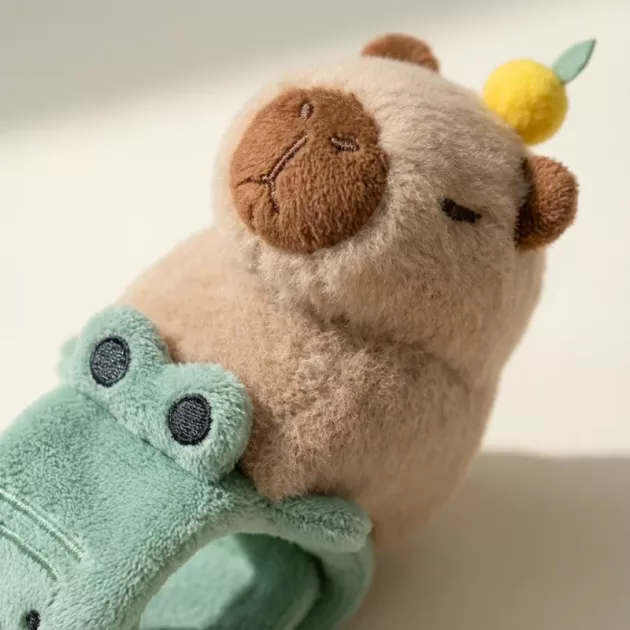 Børn overalt elsker at samle på nuttede plystilbehør. Dette snap-armbånd bringer glæde med sit bløde udseende og glade design. Det blide materiale sikrer tryghed under leg. Gør hver dag lysere ved at tilføje denne glade ven.