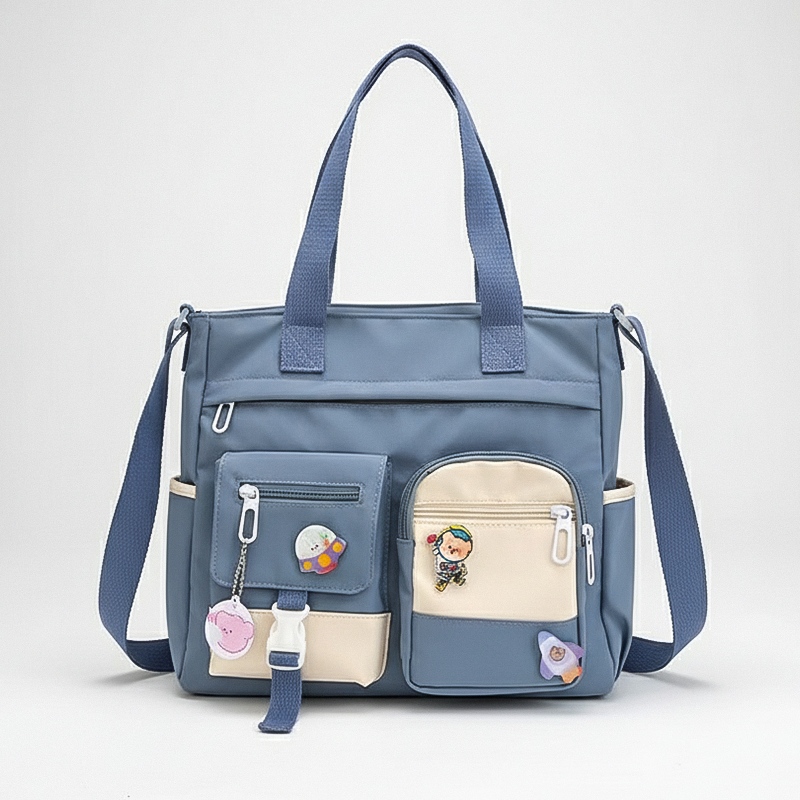 Denne crossbody er virkelig sej. Lommerne gør det nemt at finde mit legetøj og remmen gør ikke ondt på min skulder overhovedet.