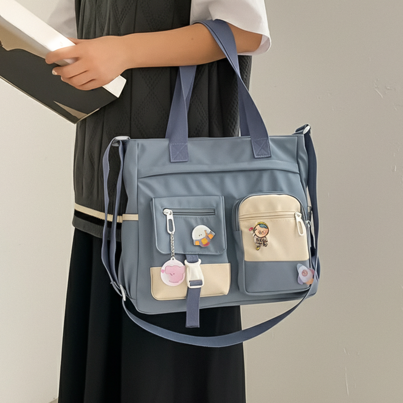 Glad for skuldertasken fordi jeg aldrig mister mine ting nu. Farverne er flotte og jeg får komplimenter fra mine venner.