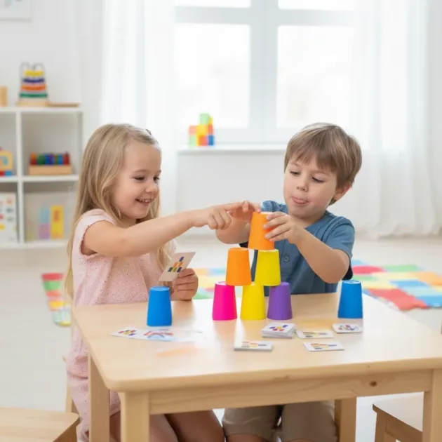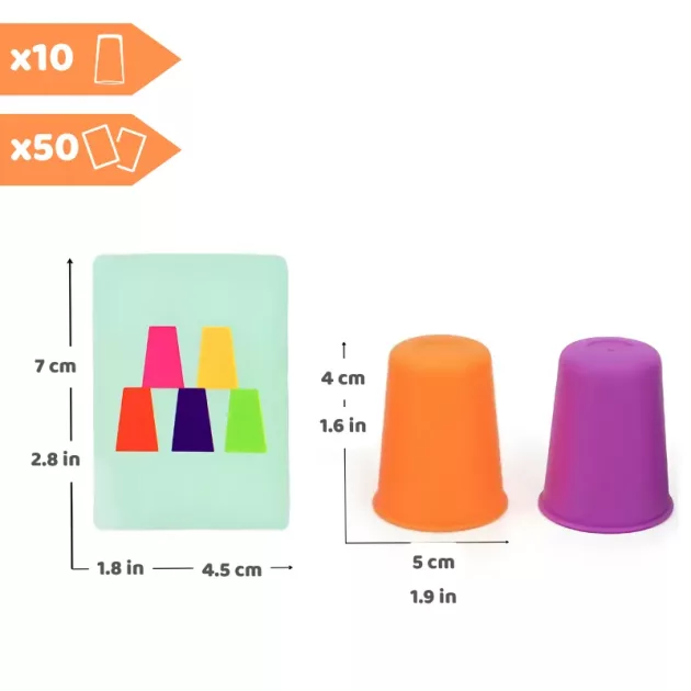 Vi fik dette stabelkop-spil til vores børn, og det er blevet vores foretrukne spil til familiefredag. De farverige kopper får alle til at grine og tænke hurtigt.