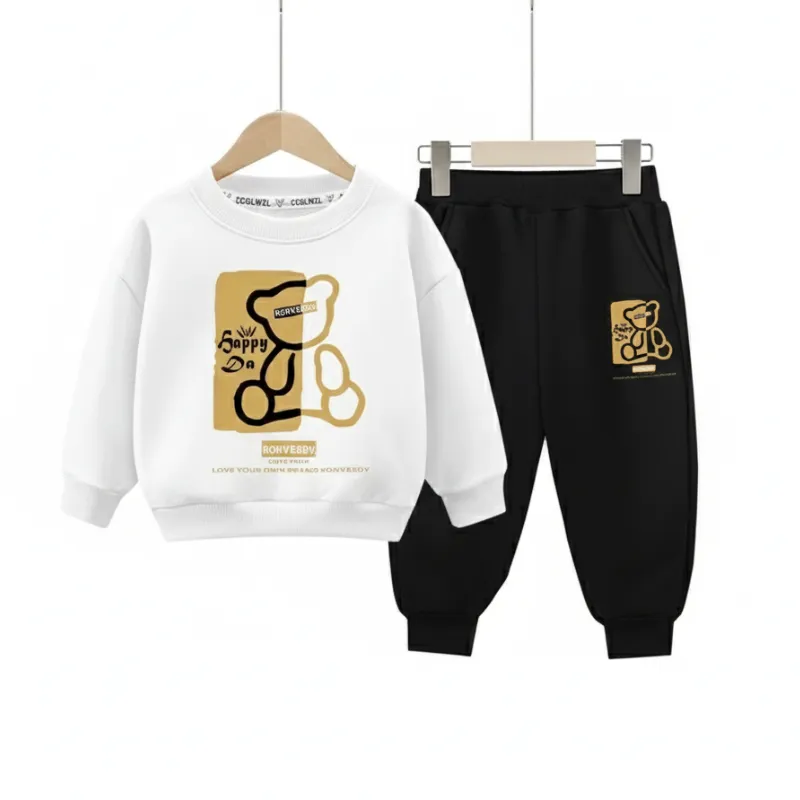 Gør dit barns garderobe lysere og morgenerne nemmere. Dette træningssæt holder de små varme og glade hele dagen. Det bløde stof føles skånsomt mod sart hud, og de legende prints fremkalder smil. Giv din lille komfort og selvtillid med et enkelt valg.