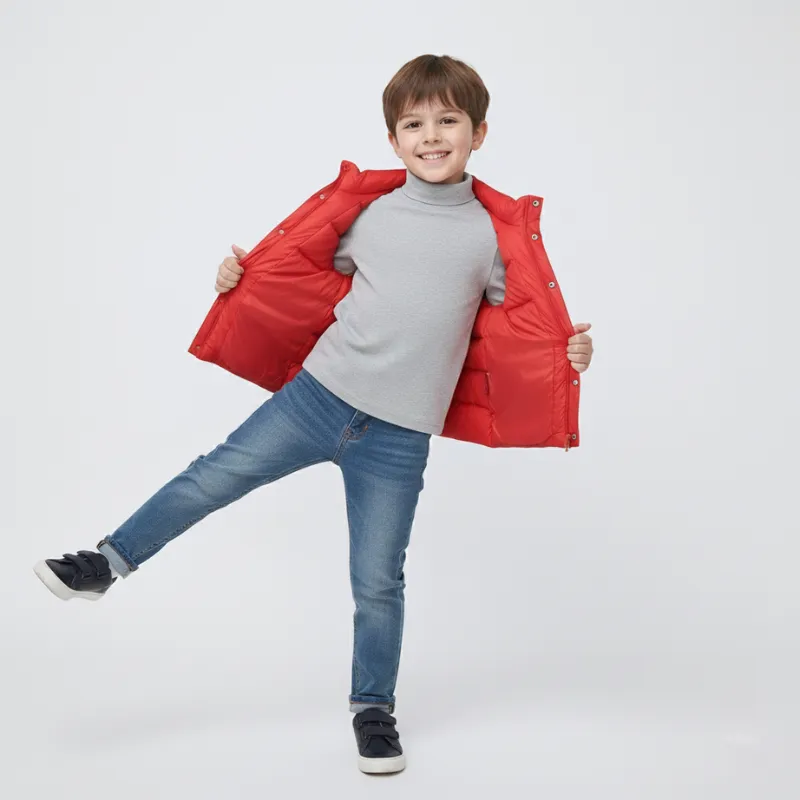 Hold de små varme gennem kolde dage udenfor denne sæson. Det bløde stof omslutter kroppen blidt og giver varme uden at fylde. Lyse farver får børnene til at skille sig ud og gør hver tur sjov. Nem at tage på, så det er hurtigt og let at blive klar.