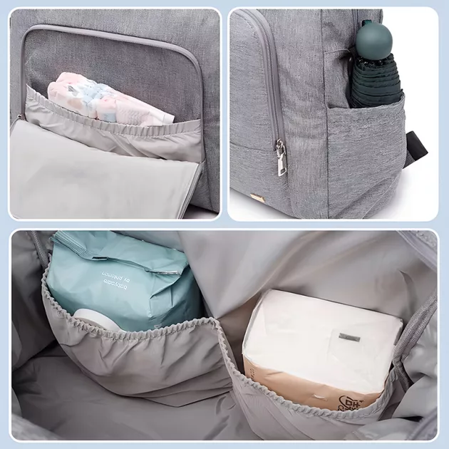 Hold Styr på Sagerne - Flere lommer giver alt sin faste plads. Aldrig mere lede efter bleer, vådservietter eller ekstra tøj igen.