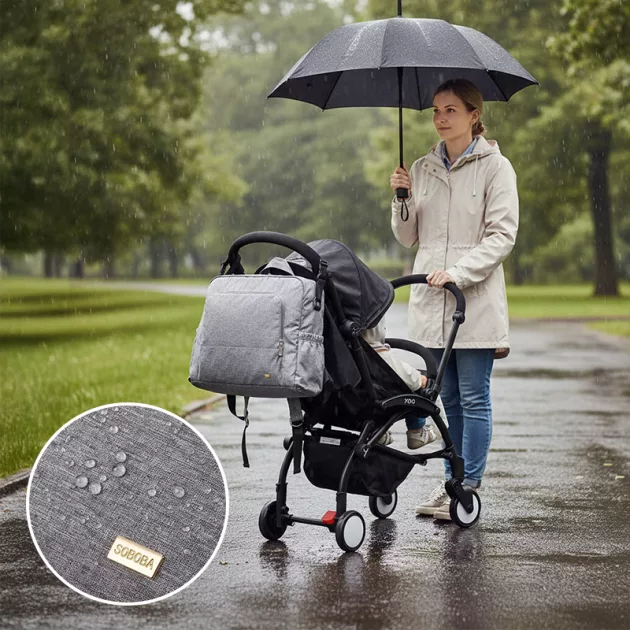 Alsidig Bæring - Tasken fastgøres let til barnevognen eller bæres over skulderen. Få frihed til at bevæge dig, mens det nødvendige altid er ved hånden.