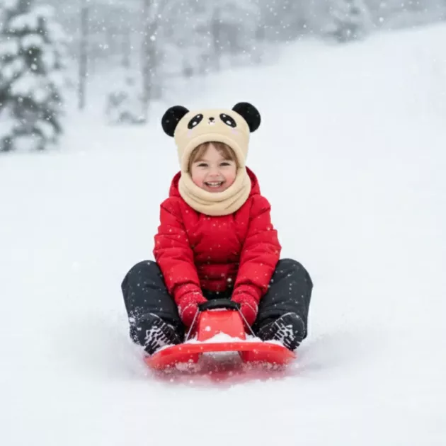 Det sjove pandae-design får mit barn til at glæde sig til at tage tøj på. Og den sidder tæt nok til kælkedage.