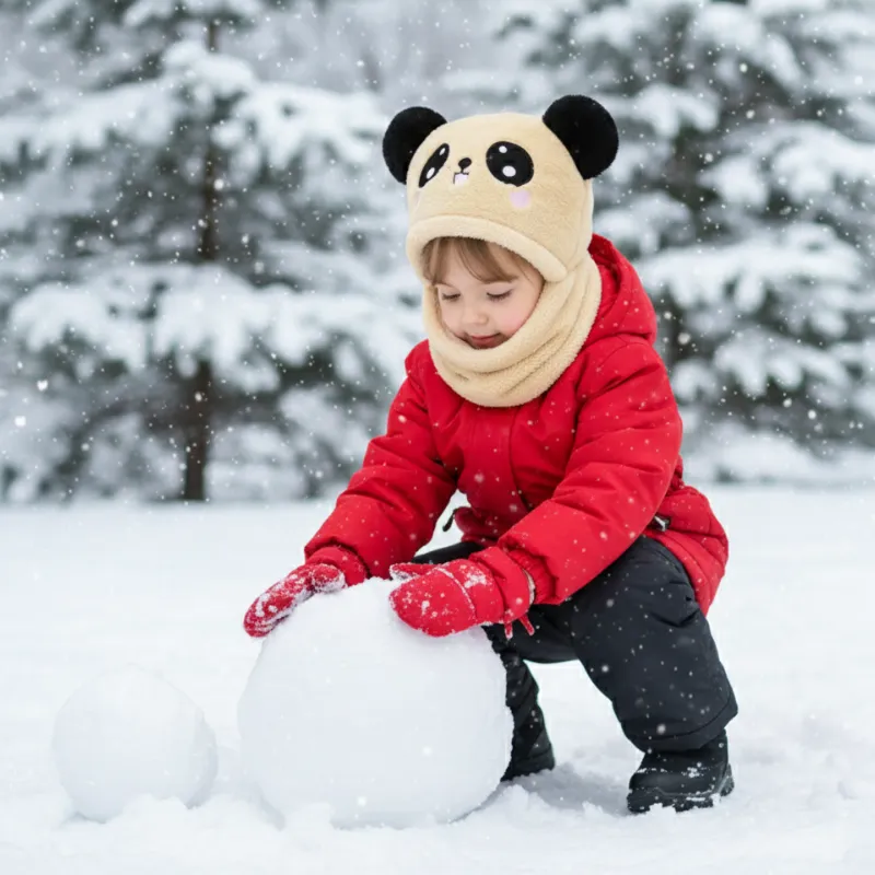 Min niece elsker sin fluffede hue. Den holder hende varm på gåture, og hun vil altid have den lyserøde med pandaer!