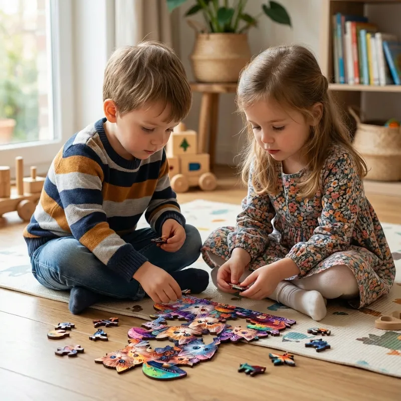 Lyse dyreformer vækker kreativiteten og holder opmærksomheden fanget. Hver brik passer perfekt, hvilket opmuntrer til omhyggelig tænkning under hver leg. At fuldføre puslespillet giver en følelse af stolthed og tilfredshed. Del særlige øjeblikke sammen, mens I bygger noget smukt og varigt.