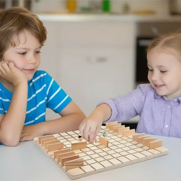 Udfordr unge sind hver dag med dette engagerende korridorspil. Trædelene føles sikre, glatte og behagelige i små hænder. Gør hver legestund til kvalitetstid og skab kloge træk og glade smil.