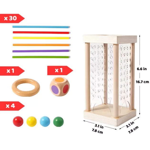 Lyse farver og smarte udfordringer bringer alle sammen til latter. Færdigheder styrkes, når hænder bevæger sig, tanker formes, og strategier udvikles. Nyd spændende runder og se samarbejdet vokse, mens I har det sjovt. Dette træspil med stave sørger for, at hvert samvær føles friskt med nye måder at spille på.