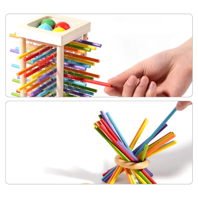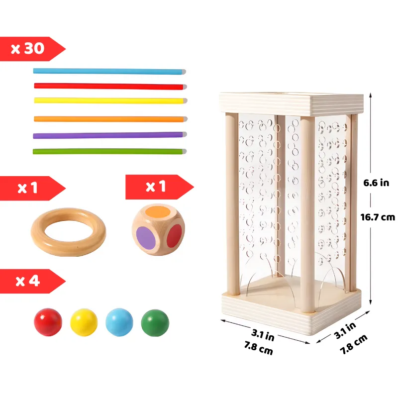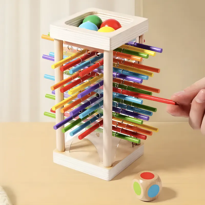 Lyse farver og smarte udfordringer bringer alle sammen til latter. Færdigheder styrkes, når hænder bevæger sig, tanker formes, og strategier udvikles. Nyd spændende runder og se samarbejdet vokse, mens I har det sjovt. Dette træspil med stave sørger for, at hvert samvær føles friskt med nye måder at spille på.